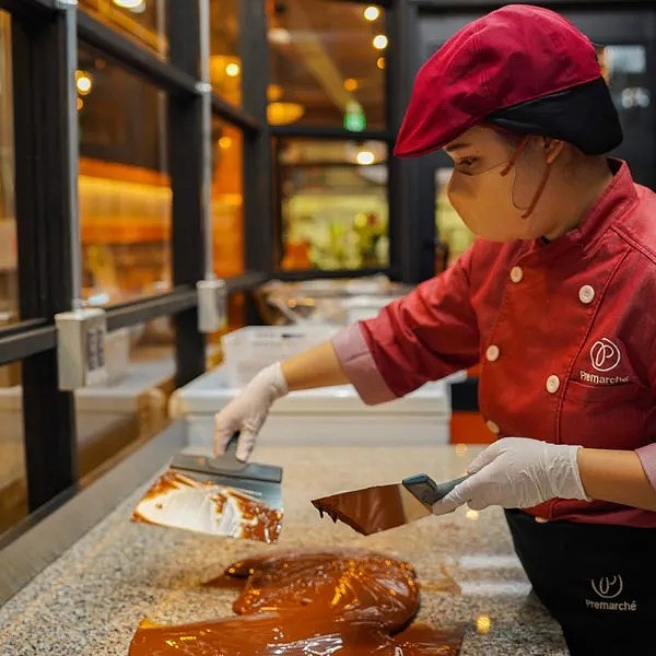 ビーントゥバー専門店「プレマルシェ・カカオレート(R)ラボ」もその一環であり、原料選びから製造までを一貫して手がけています。2018年頃にはイタリア製のマシンを導入していたものの、コロナ禍でカカオ豆が輸入できなかったため、一旦中断。その後、中川さんはイタリアで研修を受け、2023年1月に満を持して「プレマルシェ・カカオレート(R)ラボ」をオープンしました。