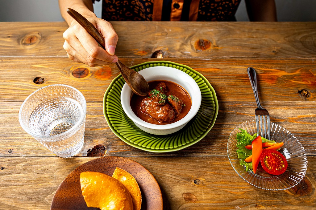 また、乳製品不使用でも、まろやかさを出すためにココナッツミルクを使用。赤ワインやデーツ、乾しいたけなども加え、甘み・うま味・酸味のバランスにこだわった本格派。一つひとつの素材の旨味が溶け込んだ豊かな味わいは、ホワイトシチューやかぼちゃシチューのファンにも喜ばれています。