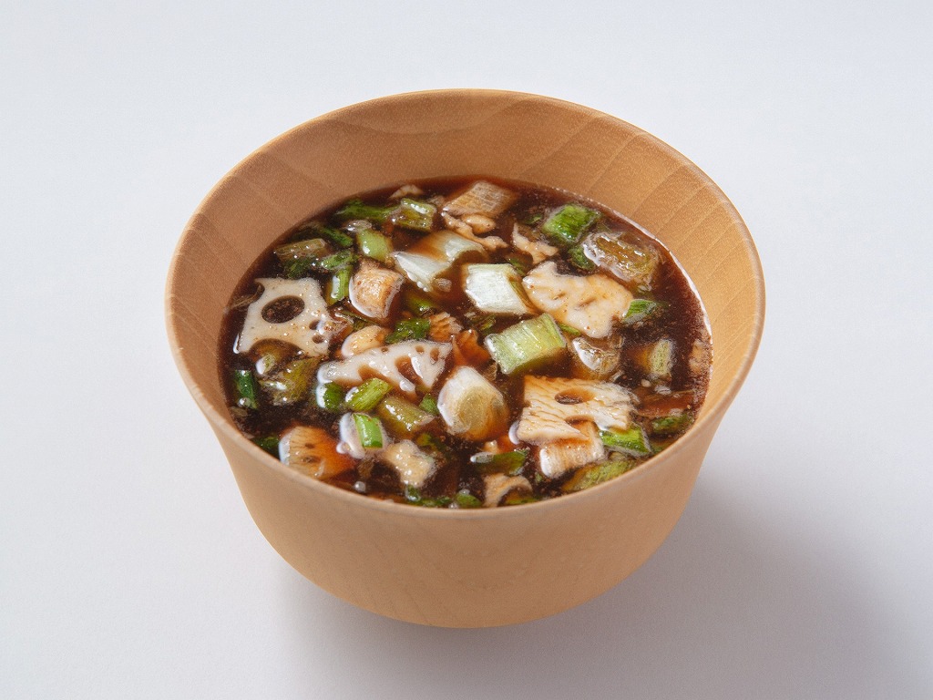 具材には、シャキシャキとしたれんこんと、香り豊かな葱をたっぷりと使用。味噌汁らしい満足感と、無添加へのこだわりを両立させています。日常の食卓にすっと馴染む一杯に仕上がっているのも特徴です。